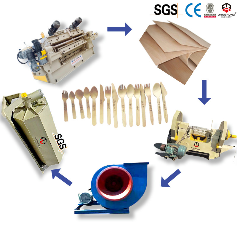 Para hacer agitadores de café, cucharas y tenedores de madera, este tipo de productos, generalmente la madera no necesita mucho tiempo, se cortará muy corta, como la máquina peladora de madera. Así puedes preparar una sierra de corte automática o manual.