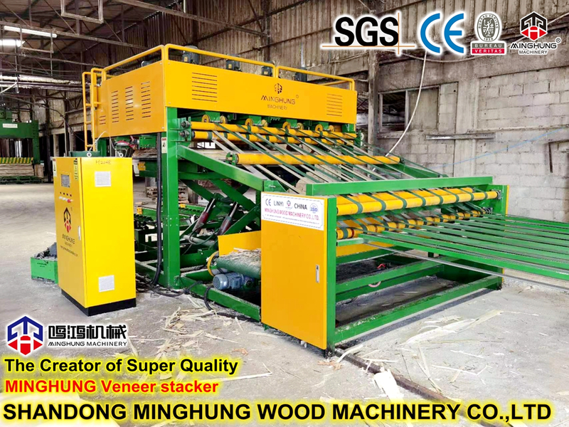 1. Alimentación de chapas ultrafinas: Las chapas ultrafinas (0,2-1,5 mm) se transportan desde las máquinas peladoras o secadoras aguas arriba hasta la alimentación del apilador. Los rodillos de presión anti-curvado aseguran una entrada plana.