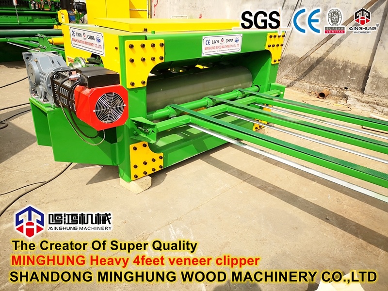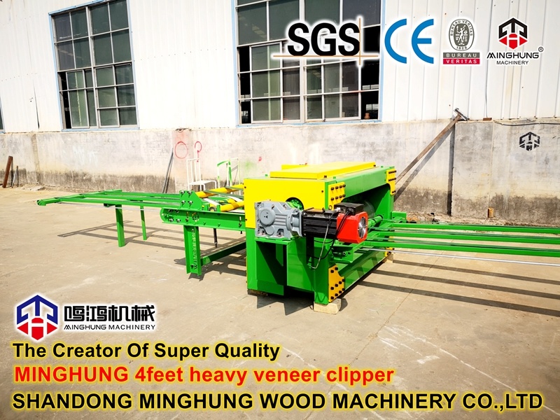 Hola, le mostraré un cortador de chapa fuerte de 4 pies para cortar chapa de madera pelada por una máquina peladora de chapa.