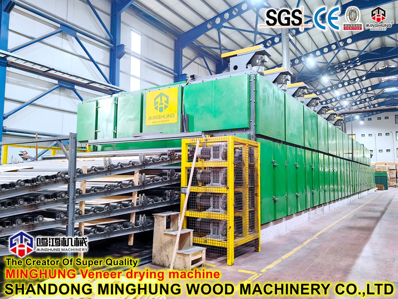 ¿Qué es un secador de chapa?MINGHUNG Secador de chapa de rodillo para secar chapa de madera original, eliminar la humedad abundante, al final, la humedad de la chapa de madera será del 5 % al 10 %, por lo que es adecuado para hacer madera contrachapada. Rodillo de chapa la secadora es adecuada para una gran capacidad de secado por día, puede ser de diferente longitud, ancho