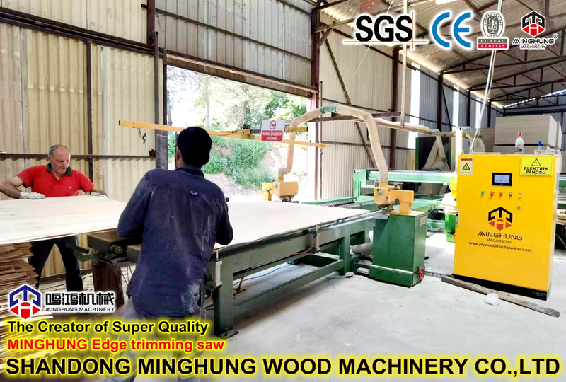 Máquina cortadora de bordes de madera contrachapada para el tamaño final de madera contrachapada, el trabajador coloca la chapa pegada, por lo que el borde de la madera contrachapada no está limpio, por eso es necesaria la máquina cortadora de bordes de madera contrachapada.