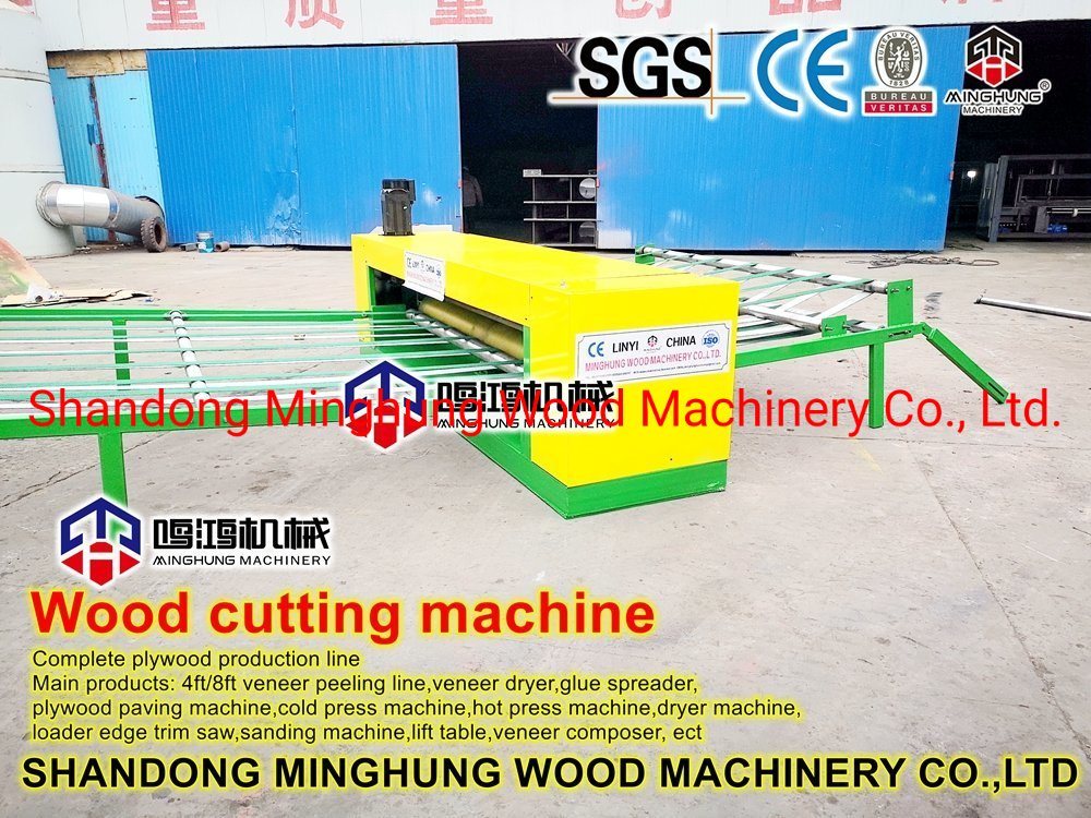 la aplicación de la cuchilla de corte se conecta con la máquina peladora de chapa de madera, después de procesar la madera en trozos de chapa de madera, esta cuchilla de corte cortará la madera de acuerdo con el ancho que desee.el tamaño estándar tiene 4 pies y 8 pies, y la longitud también se puede personalizar según sus necesidades. Máquina de corte de la máquina peladora de chapa de árbol