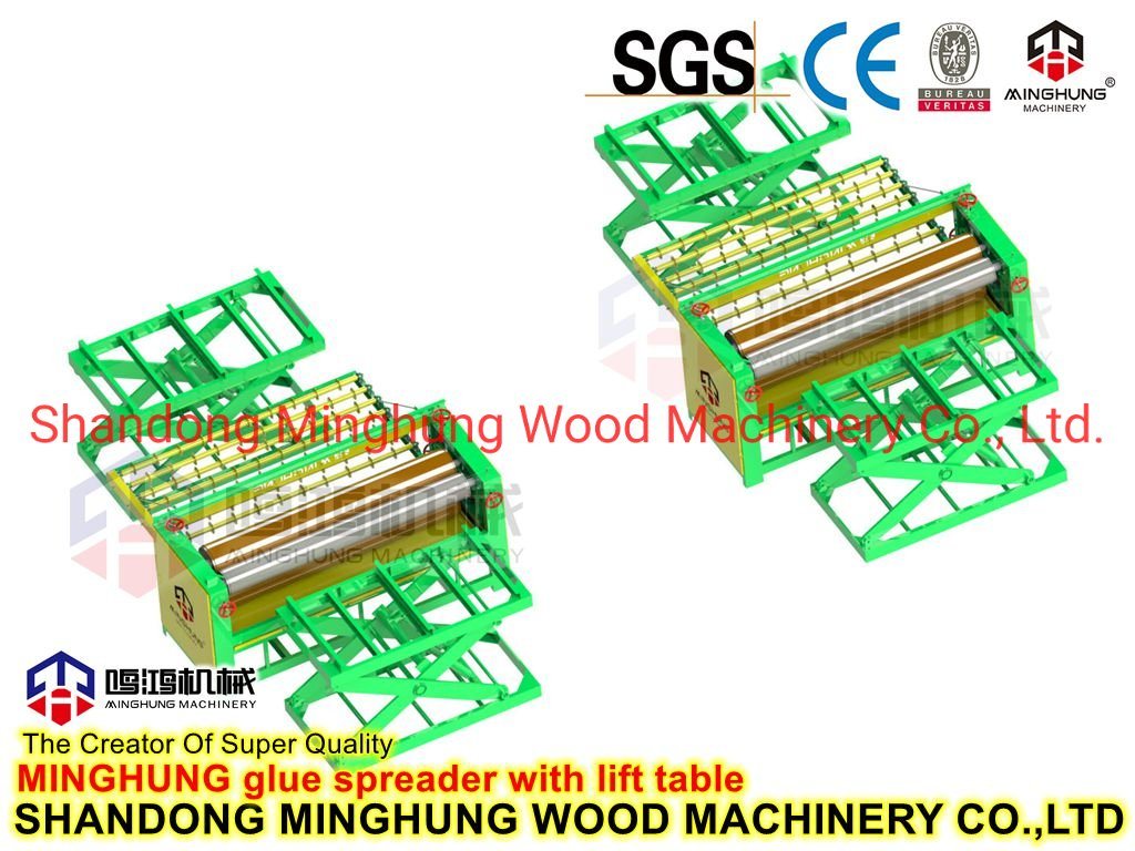 La función del esparcidor de pegamento cubre principalmente el pegamento en ambos lados de la chapa de madera contrachapada, luego los trabajadores los pavimentan en tamaño de madera contrachapada.El esparcidor de pegamento tiene 4 pies y 8 pies o se puede personalizar según sus necesidades.