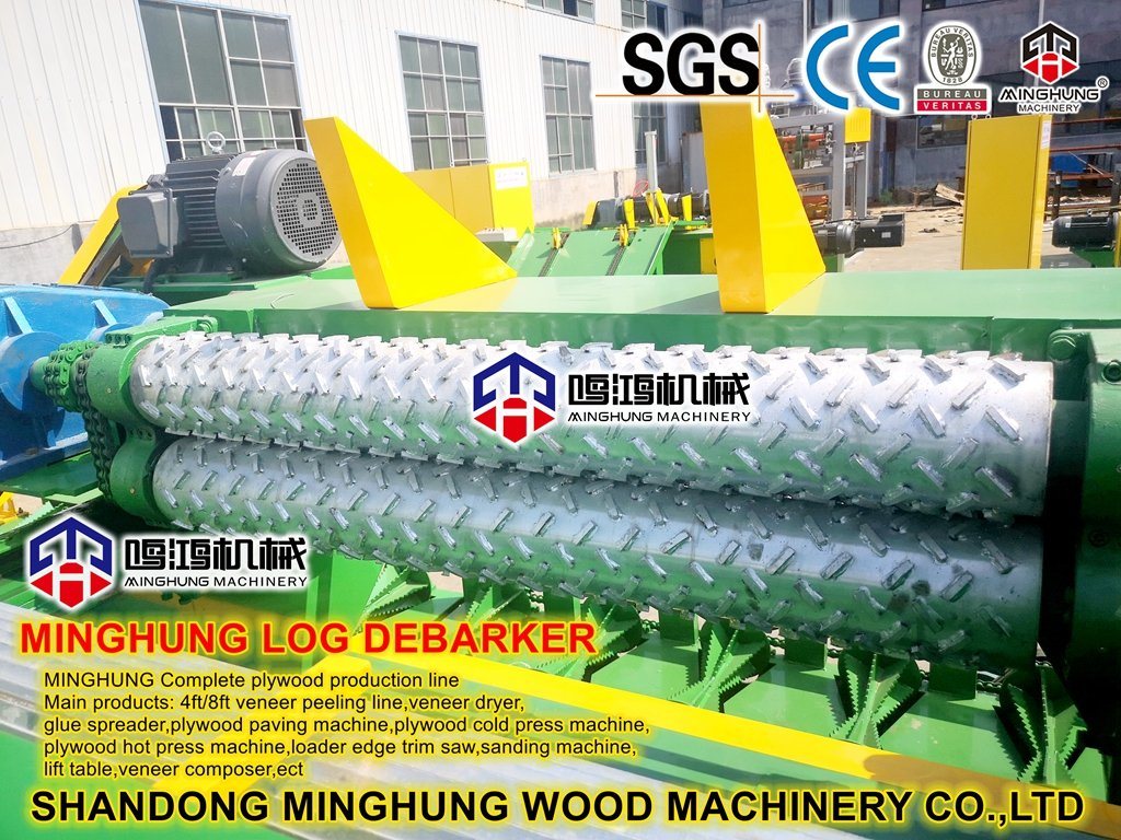 VENTAJAS: <1> La operación de la descortezadora de madera es fácil para su trabajador.<2> el material del rodillo es 'rodillo de lobo', puede quitar fácilmente la corteza de madera.<3> Su velocidad es rápida, puede ofrecer suficiente madera para enchapar la máquina peladora.