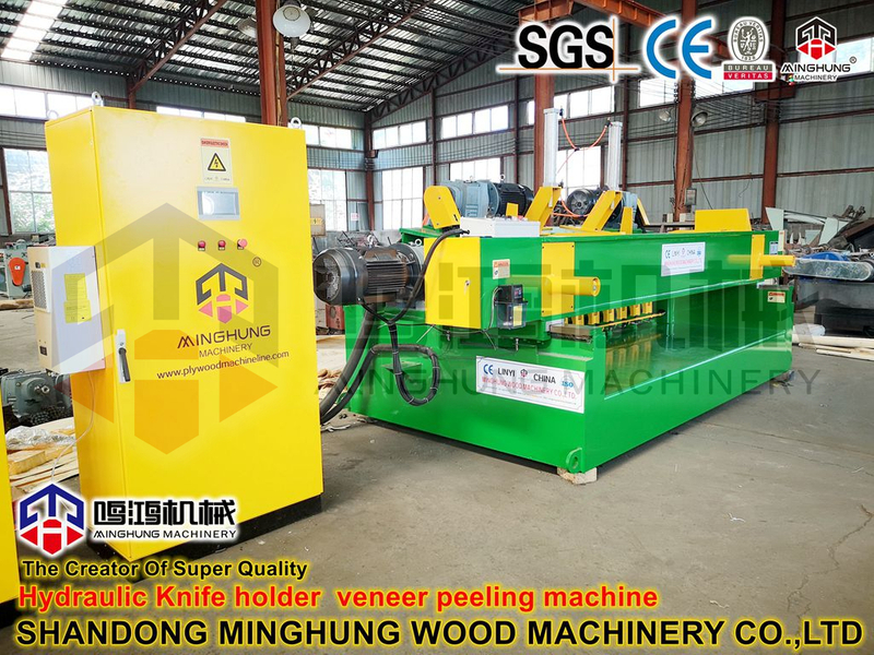 MINGHUNG El torno de corte rotativo para enchapado adopta el método de cuchillo de presión hidráulica, lo que hace que sea más conveniente reemplazar el cuchillo después del corte rotativo de enchapado.