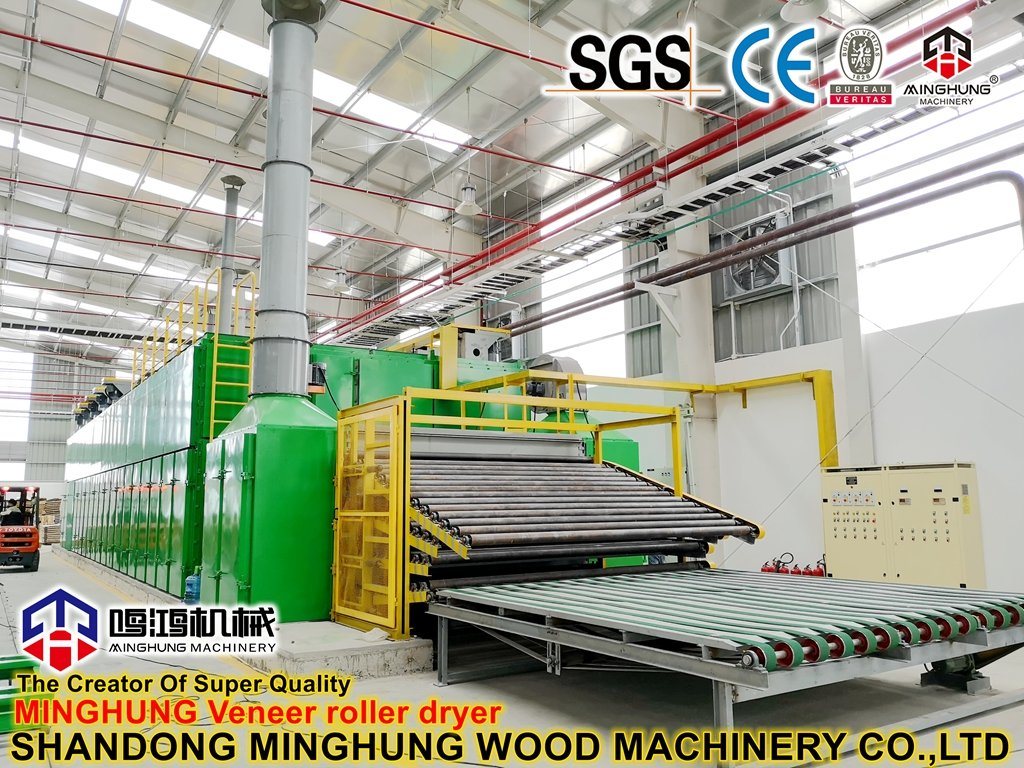 ¿Qué es un secador de chapa?MINGHUNG Secador de chapa de rodillo para secar chapa de madera original, eliminar la humedad abundante, al final, la humedad de la chapa de madera será del 5 % al 10 %, por lo que es adecuado para hacer madera contrachapada. Rodillo de chapa la secadora es adecuada para una gran capacidad de secado por día, puede ser de diferente longitud, ancho