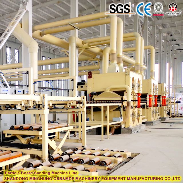 Línea de lijado: generalmente emplea una lijadora de cinturón ancho con múltiples cabezas (p. Ej., 6-8 cabezas) para controlar con precisión el grosor y la suavidad de la placa final, proporcionando un sustrato perfecto para un procesamiento posterior.