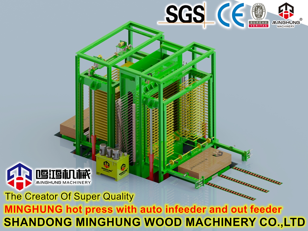 We-Shandong MINGHUNG Wood Machinery es uno de los líderes en máquinas de madera contrachapada en China, suministra una gama completa de maquinaria, sistemas y tecnología para la producción de madera contrachapada y chapas, que incluye descortezadora de madera, máquina peladora de chapas, apiladora de chapas al vacío, amoladora de cuchillas, máquina secadora de chapas, esparcidor de pegamento, prensa en frío, máquina prensadora en caliente, sierra para madera contrachapada y lijadora. máquina.