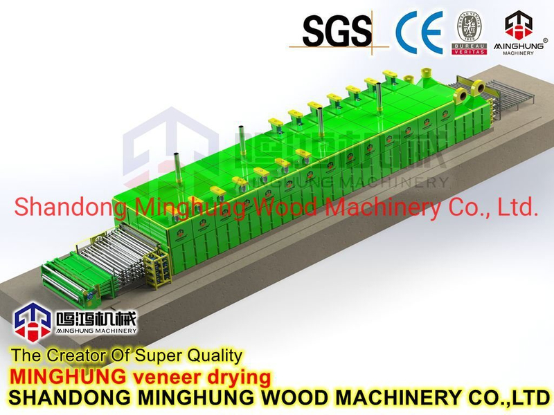 ¿Qué es un secador de chapa?MINGHUNG Secador de chapa de rodillo para secar chapa de madera original, eliminar la humedad abundante, al final, la humedad de la chapa de madera será del 5 % al 10 %, por lo que es adecuado para hacer madera contrachapada. Rodillo de chapa la secadora es adecuada para una gran capacidad de secado por día, puede ser de diferente longitud, ancho