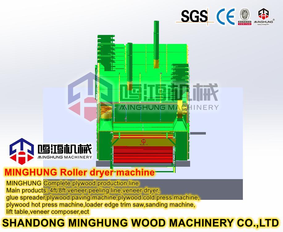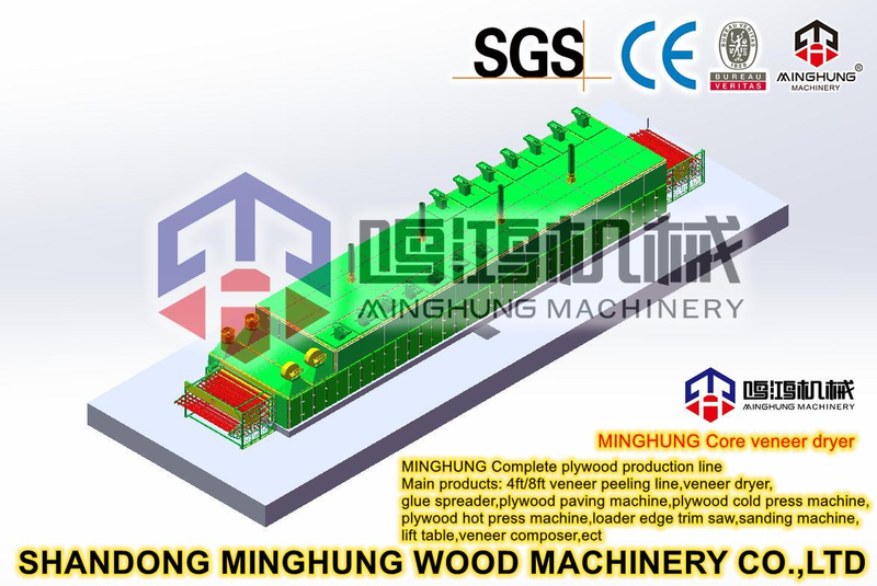 ¿Qué es un secador de chapa?MINGHUNG Secador de chapa de rodillo para secar chapa de madera original, eliminar la humedad abundante, al final, la humedad de la chapa de madera será del 5 % al 10 %, por lo que es adecuado para hacer madera contrachapada. Rodillo de chapa la secadora es adecuada para una gran capacidad de secado por día, puede ser de diferente longitud, ancho