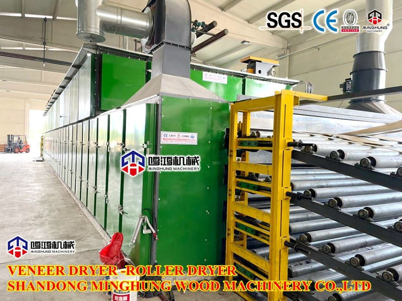 ¿Qué es un secador de chapa?MINGHUNG Secador de chapa de rodillo para secar chapa de madera original, eliminar la humedad abundante, al final, la humedad de la chapa de madera será del 5 % al 10 %, por lo que es adecuado para hacer madera contrachapada. Rodillo de chapa la secadora es adecuada para una gran capacidad de secado por día, puede ser de diferente longitud, ancho