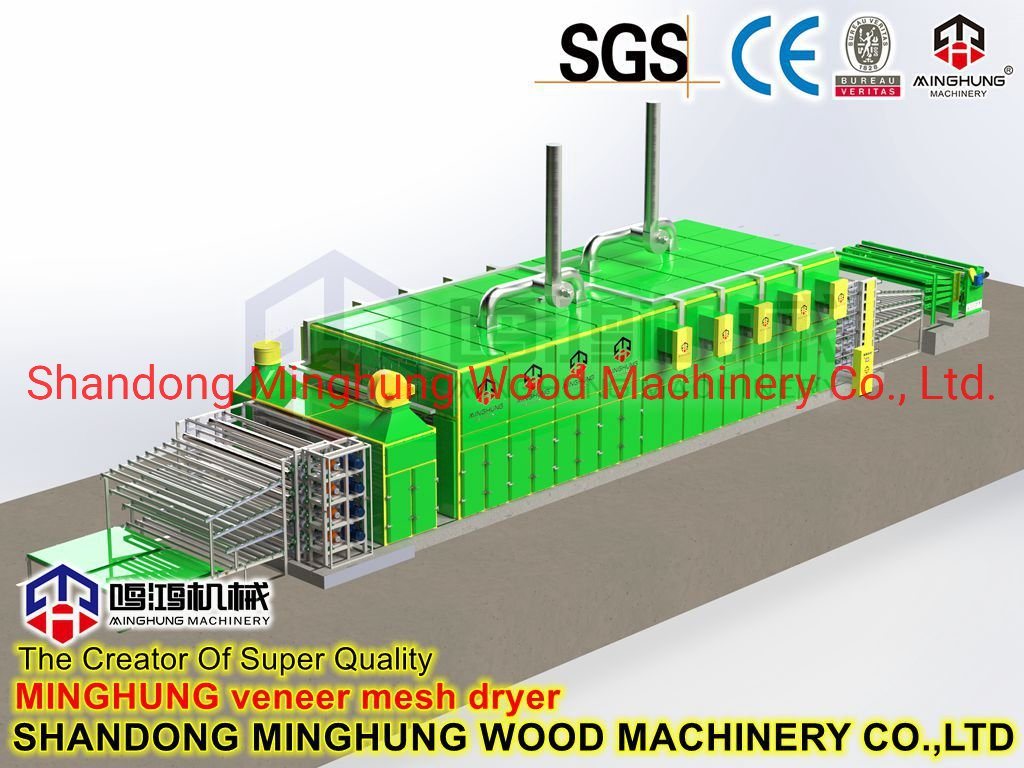 ¿Qué es un secador de chapa?MINGHUNG Secador de chapa de rodillo para secar chapa de madera original, eliminar la humedad abundante, al final, la humedad de la chapa de madera será del 5 % al 10 %, por lo que es adecuado para hacer madera contrachapada. Rodillo de chapa la secadora es adecuada para una gran capacidad de secado por día, puede ser de diferente longitud, ancho