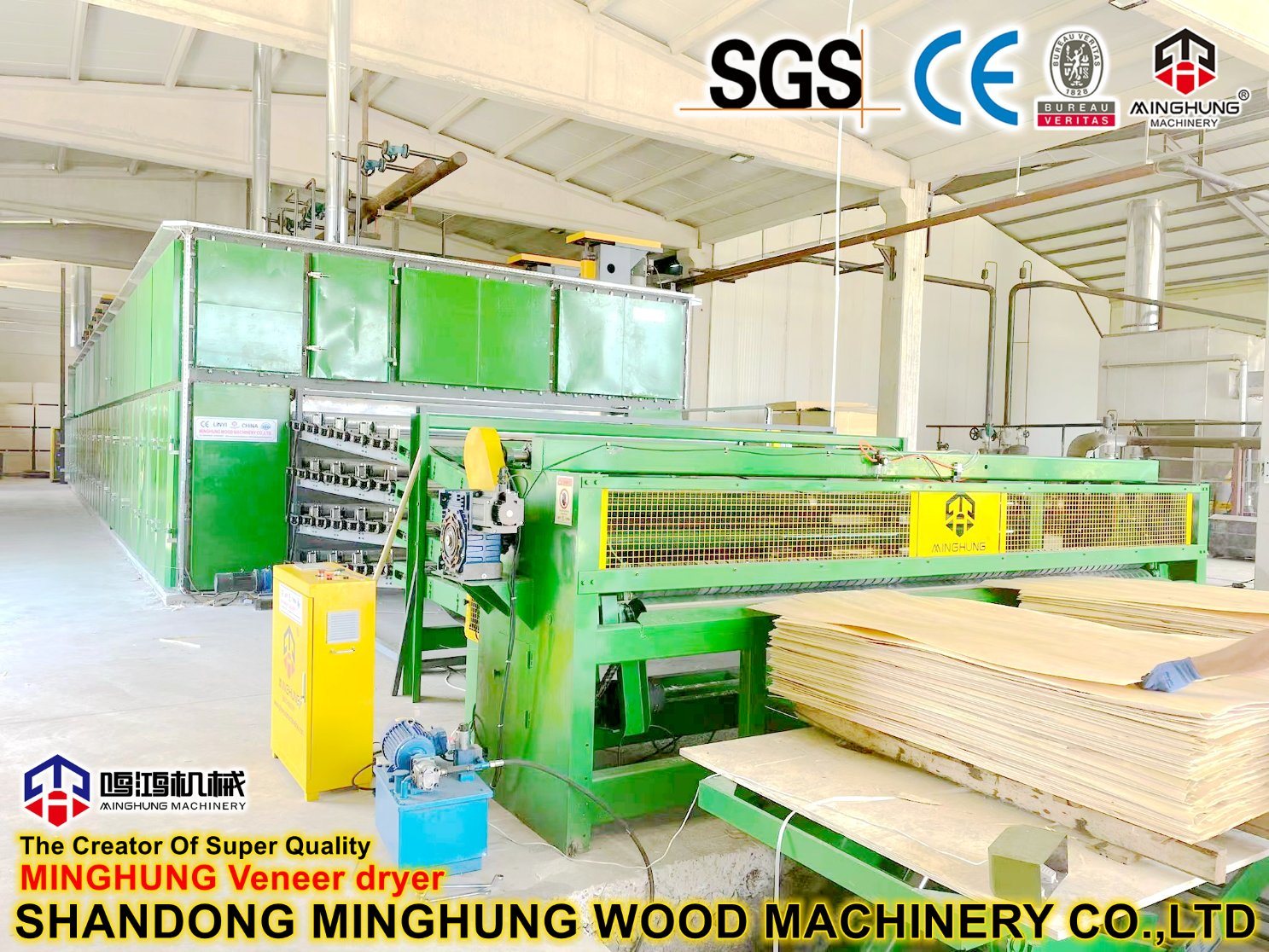 ¿Qué es un secador de chapa?MINGHUNG Secador de chapa de rodillo para secar chapa de madera original, eliminar la humedad abundante, al final, la humedad de la chapa de madera será del 5 % al 10 %, por lo que es adecuado para hacer madera contrachapada. Rodillo de chapa la secadora es adecuada para una gran capacidad de secado por día, puede ser de diferente longitud, ancho