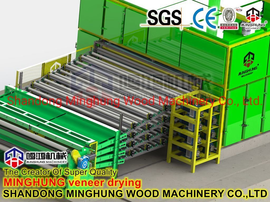 ¿Qué es un secador de chapa?MINGHUNG Secador de chapa de rodillo para secar chapa de madera original, eliminar la humedad abundante, al final, la humedad de la chapa de madera será del 5 % al 10 %, por lo que es adecuado para hacer madera contrachapada. Rodillo de chapa la secadora es adecuada para una gran capacidad de secado por día, puede ser de diferente longitud, ancho