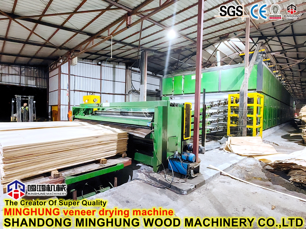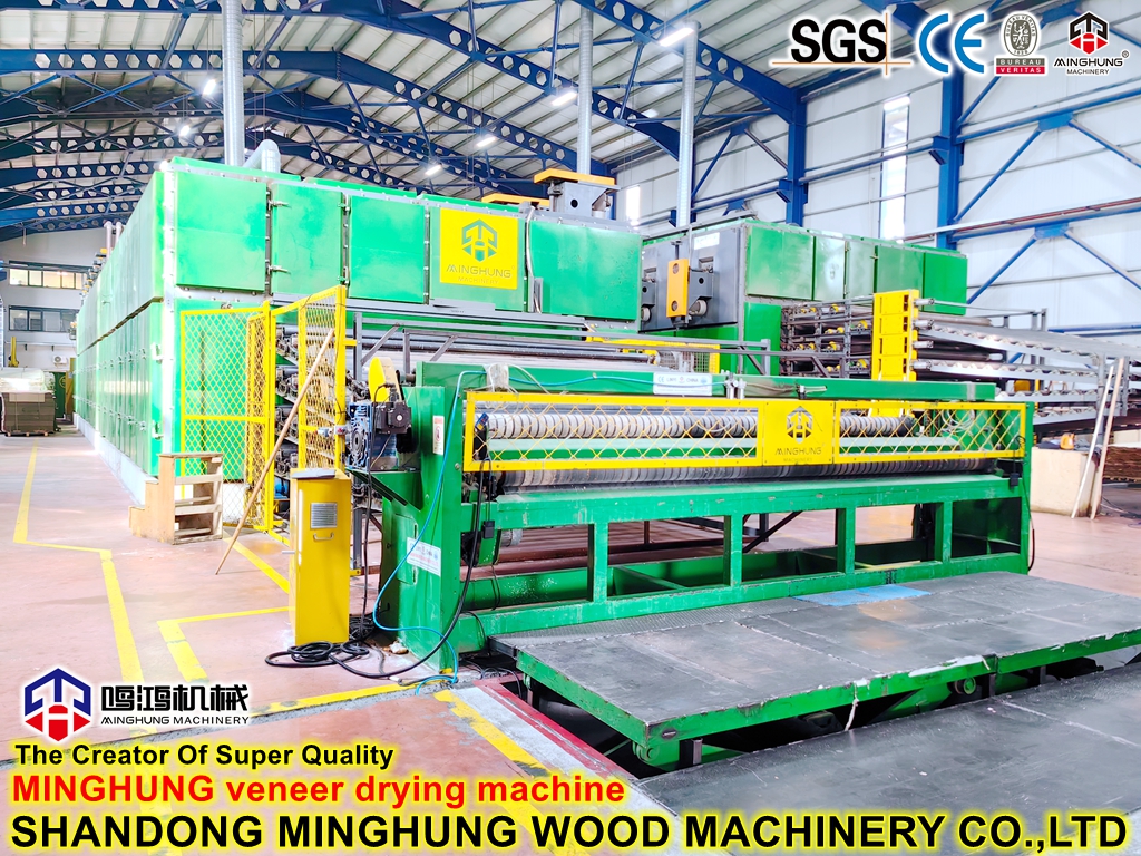 ¿Qué es un secador de chapa?MINGHUNG Secador de chapa de rodillo para secar chapa de madera original, eliminar la humedad abundante, al final, la humedad de la chapa de madera será del 5 % al 10 %, por lo que es adecuado para hacer madera contrachapada. Rodillo de chapa la secadora es adecuada para una gran capacidad de secado por día, puede ser de diferente longitud, ancho