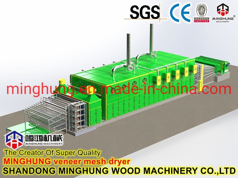 ¿Qué es una secadora de chapa?MINGHUNG Secadora de chapa de madera para secar chapas de madera originales, elimina la humedad abundante, al final, la humedad de la chapa de madera será del 5% al ​​10%, por lo que es adecuada para fabricar madera contrachapada. Las secadoras de rodillos de chapa son adecuadas para una gran capacidad de secado por día, pueden tener diferentes longitudes y anchos.