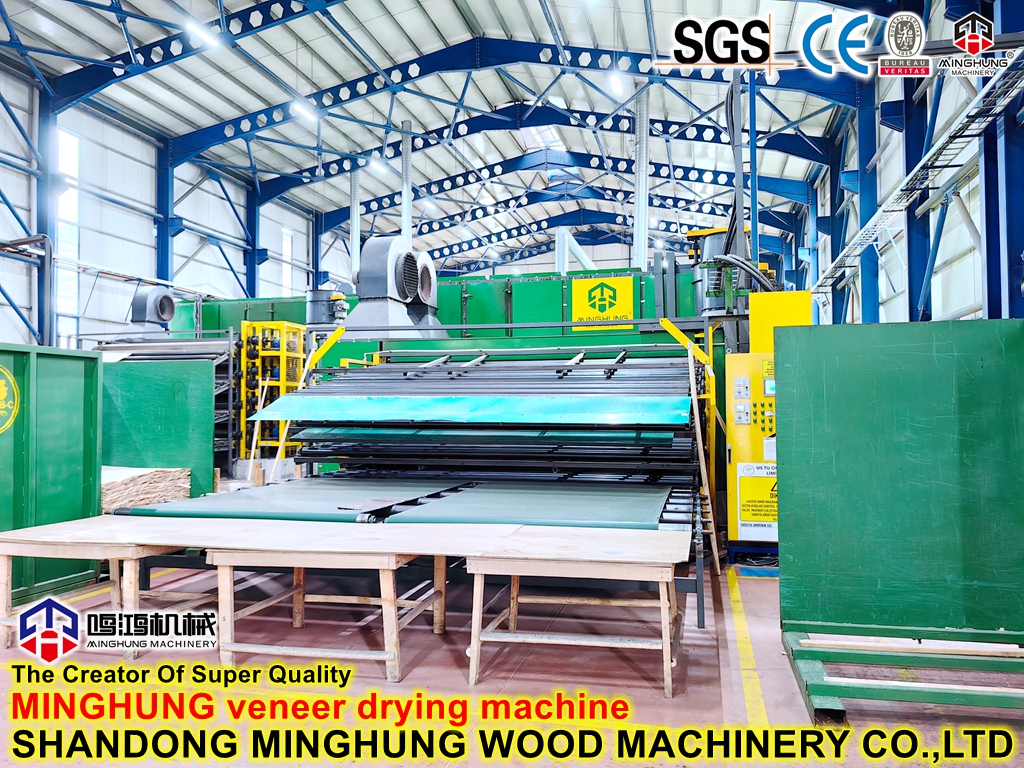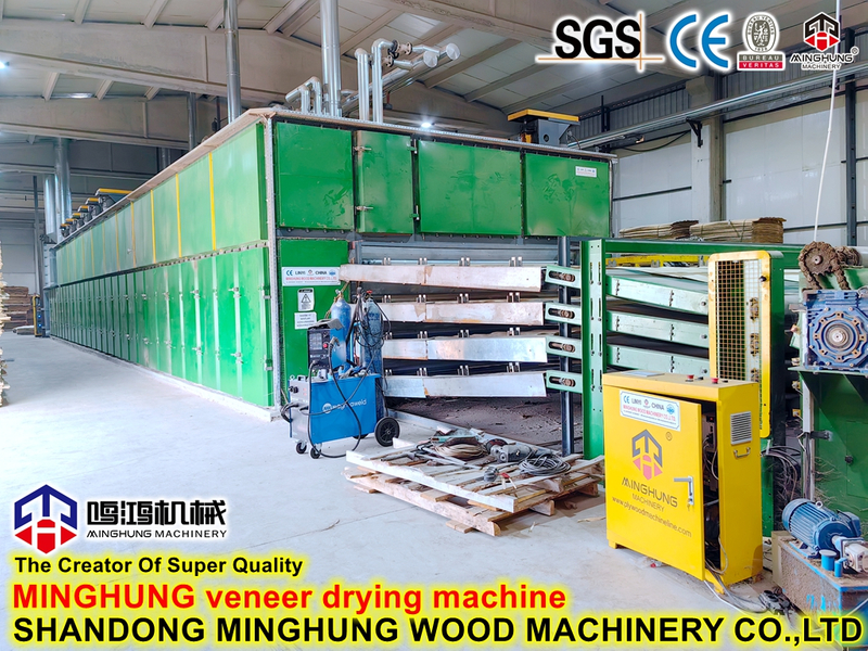¿Qué es un secador de chapa?MINGHUNG Secador de chapa de rodillo para secar chapa de madera original, eliminar la humedad abundante, al final, la humedad de la chapa de madera será del 5 % al 10 %, por lo que es adecuado para hacer madera contrachapada. Rodillo de chapa la secadora es adecuada para una gran capacidad de secado por día, puede ser de diferente longitud, ancho