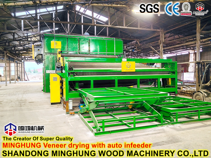 ¿Qué es un secador de chapa?MINGHUNG Secador de chapa de rodillo para secar chapa de madera original, eliminar la humedad abundante, al final, la humedad de la chapa de madera será del 5 % al 10 %, por lo que es adecuado para hacer madera contrachapada. Rodillo de chapa la secadora es adecuada para una gran capacidad de secado por día, puede ser de diferente longitud, ancho