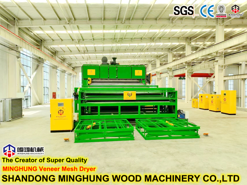 ¿Qué es un secador de chapa?MINGHUNG Secador de chapa de rodillo para secar chapa de madera original, eliminar la humedad abundante, al final, la humedad de la chapa de madera será del 5 % al 10 %, por lo que es adecuado para hacer madera contrachapada. Rodillo de chapa la secadora es adecuada para una gran capacidad de secado por día, puede ser de diferente longitud, ancho