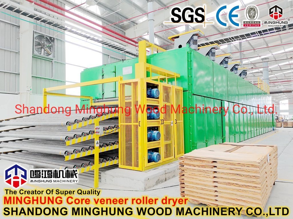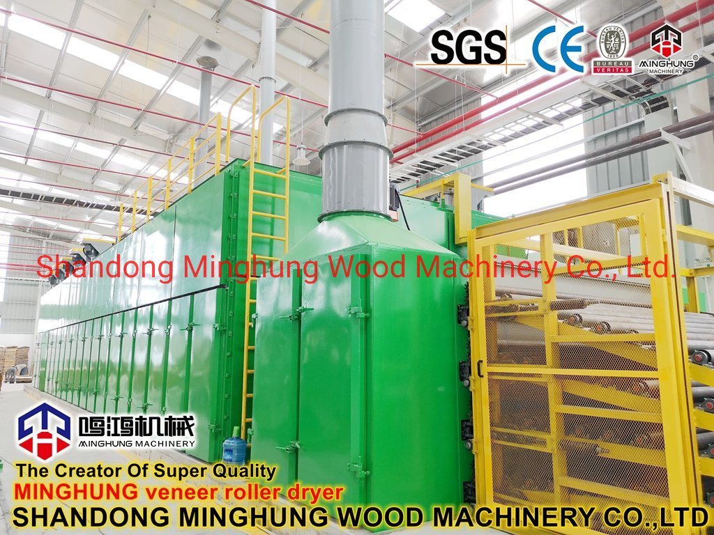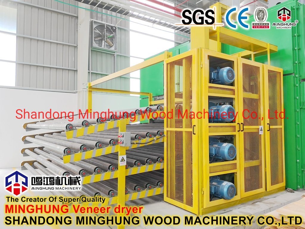 ¿Qué es un secador de chapa?MINGHUNG Secador de chapa de rodillo para secar chapa de madera original, eliminar la humedad abundante, al final, la humedad de la chapa de madera será del 5 % al 10 %, por lo que es adecuado para hacer madera contrachapada. Rodillo de chapa la secadora es adecuada para una gran capacidad de secado por día, puede ser de diferente longitud, ancho