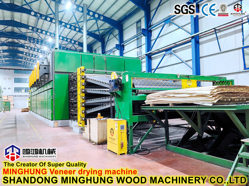 ¿Qué es un secador de chapa?MINGHUNG Secador de chapa de rodillo para secar chapa de madera original, eliminar la humedad abundante, al final, la humedad de la chapa de madera será del 5 % al 10 %, por lo que es adecuado para hacer madera contrachapada. Rodillo de chapa la secadora es adecuada para una gran capacidad de secado por día, puede ser de diferente longitud, ancho